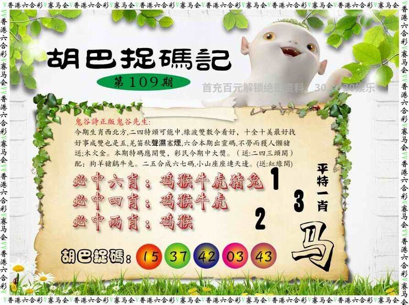 ╠解胡巴捉码记╣109期:今期生肖西北方,二四特頭可能中,绿波型社今看好,十全十美最好找好事成赞也是五,羌笛秋聲塞煙,六合本期出室码,不势而獲人帽猪送;木火金。本期特馬應開雙,彩民今期中大獎。(送:二四三频開)配:狗羊猪鸡牛兔。二五合成六七码,小山座座速天達。(送:红波開)